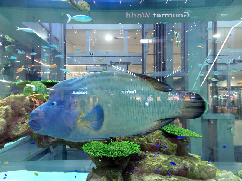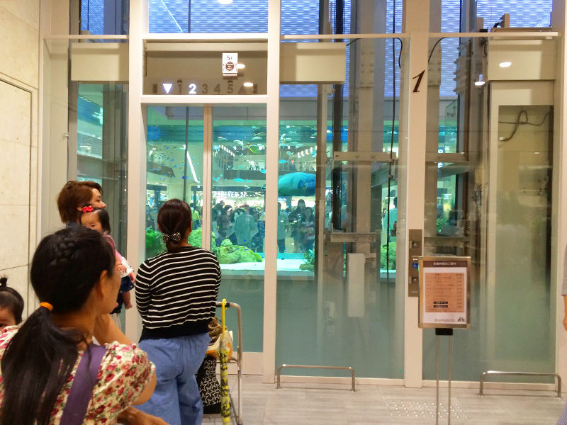 エレベーターもシースルーになっていて、水槽の裏側が見えます。