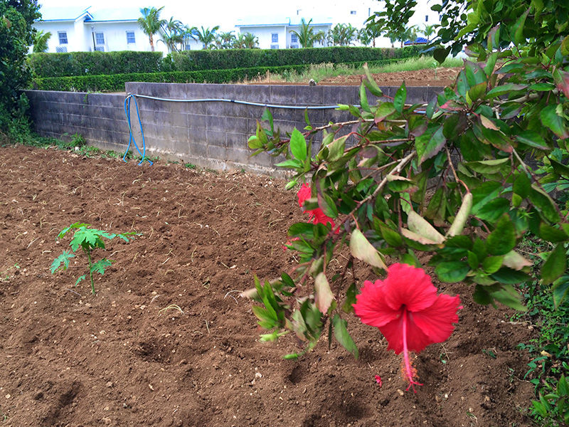 この写真ではわかりにくいですが、パパイヤの向こう辺りに植えました。