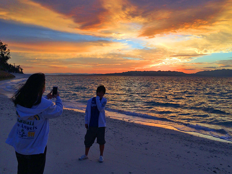 起きている民泊の高校生を連れて、ビーチに出てみました。